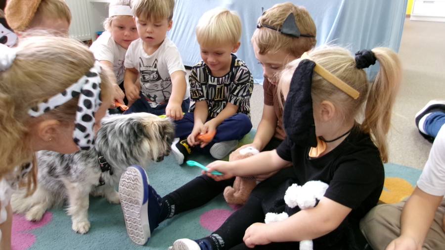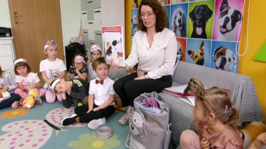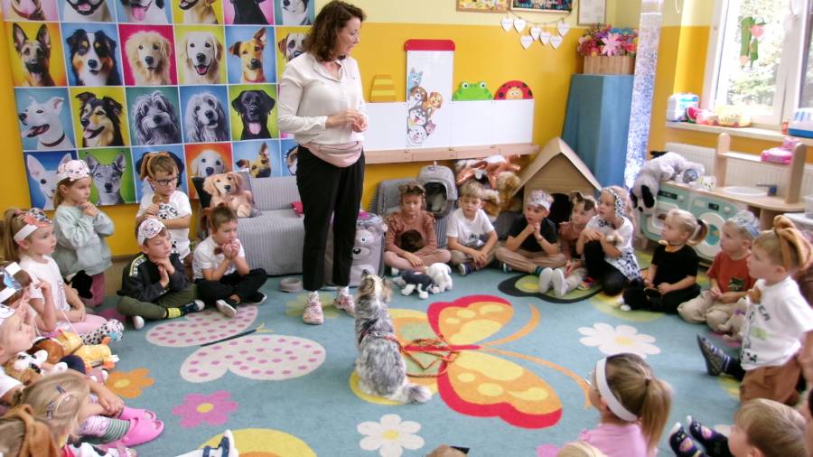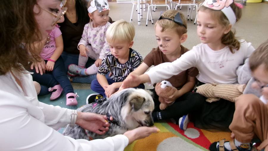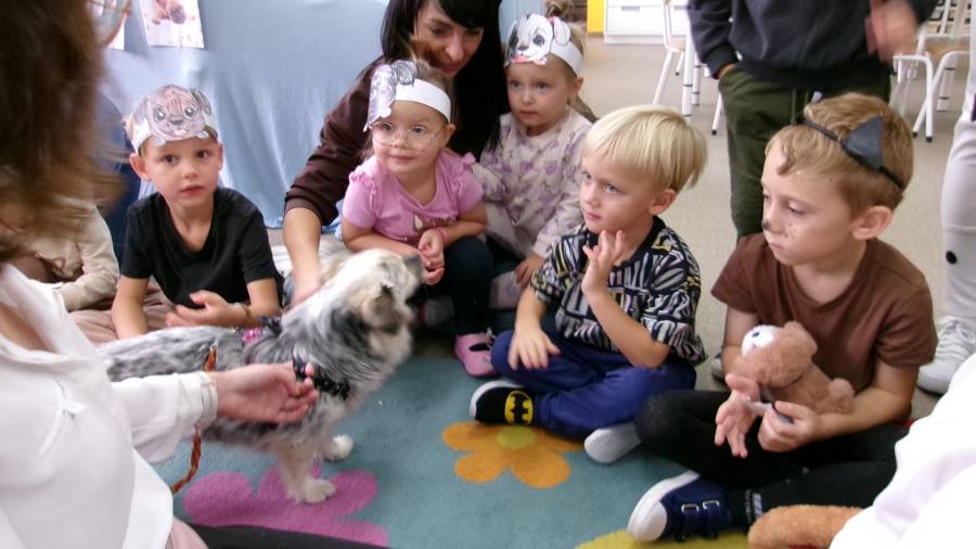 Dzieci miały okazję dowiedzieć się, jak należy dbać o psa, nauczyć się zasad bezpiecznego kontaktu ze zwierzętami, poznać ciekawostki na temat pracy psów-terapeutów oraz