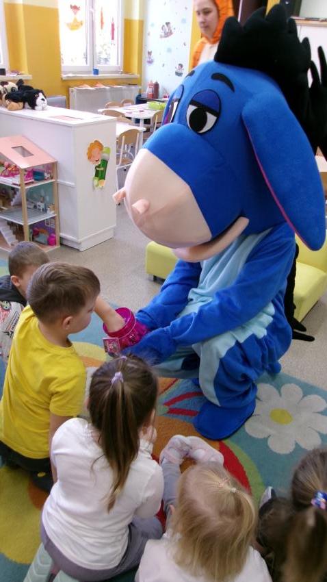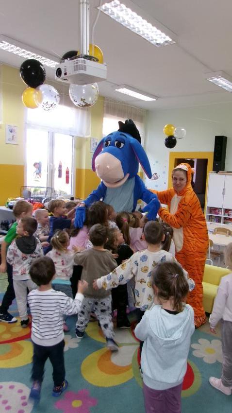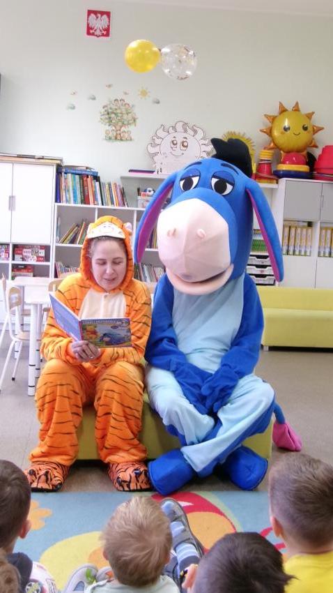 Mama Paulinki przebrana za Tygryska przeczytała dziś Promyczkom bajkę pt."Urodziny Kłapouchego", a jej przyjaciel Kłapouchy potańczył z dziećmi i rozdał im lizaki urodzinowe.