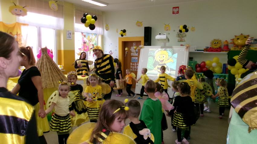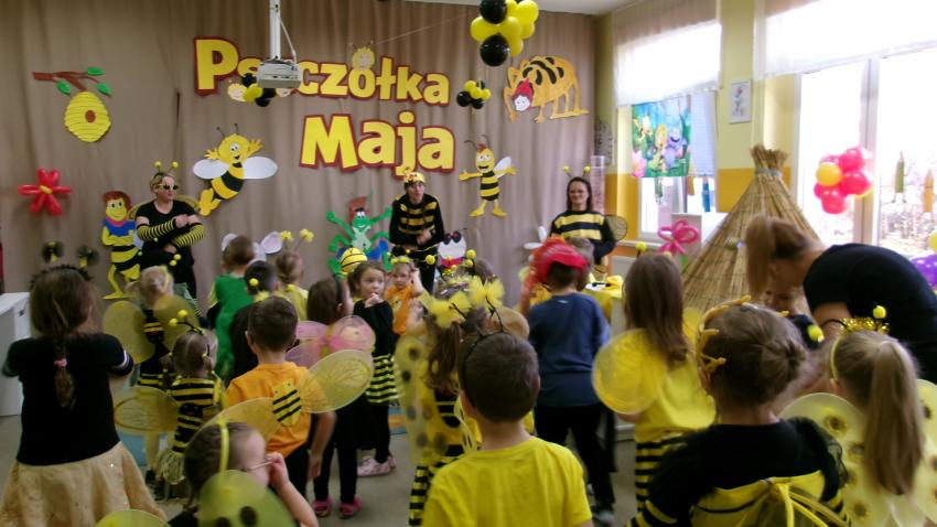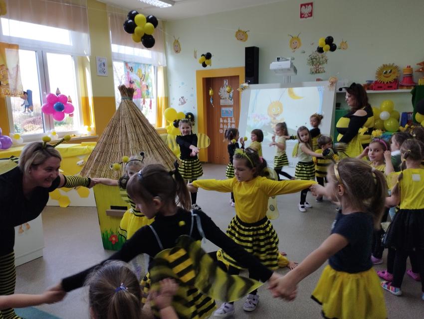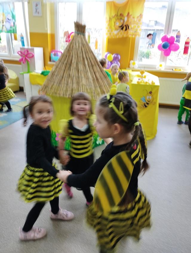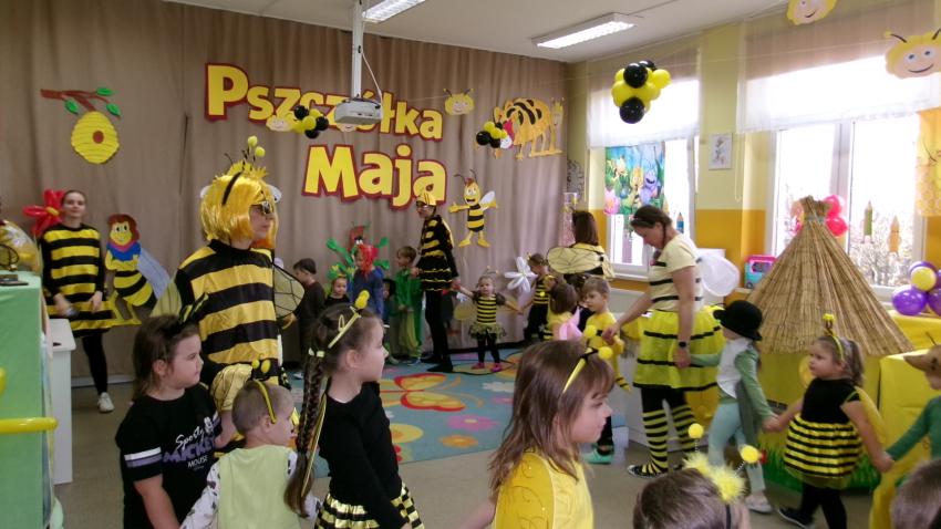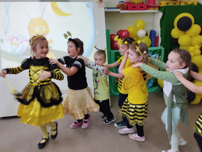 Nie zabrakło wspólnych tańców i śpiewu przy piosenkach o Pszczółce Mai, a uśmiechy na twarzach dzieci były najlepszym dowodem na to, że był to dzień pełen radości i dobrej zabawy!