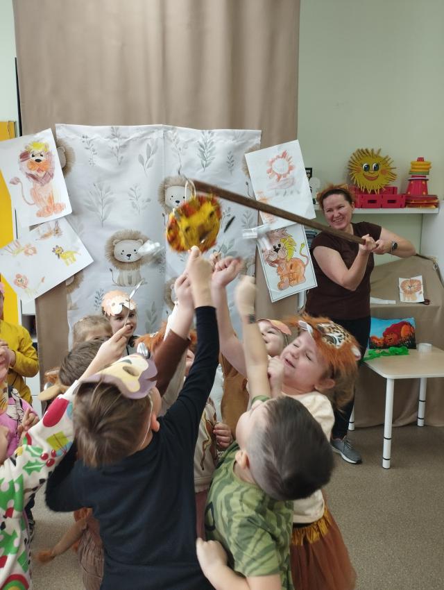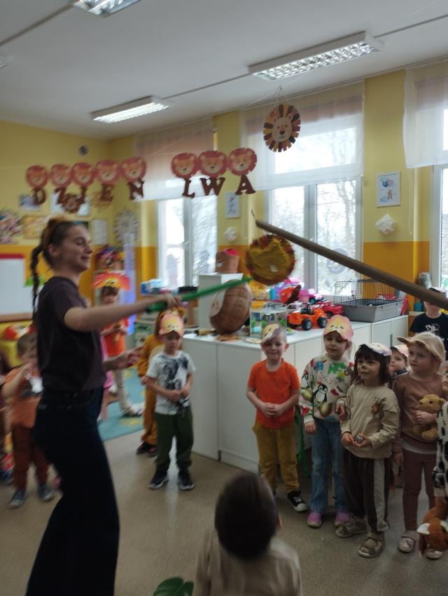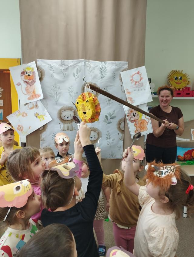 Promyczki obchodziły wyjątkowy Dzień Lwa w ramach programu Promyczki poznają zwierzęta. Podczas zajęć poznały kolejne zwierzę ? tym razem afrykańskiego króla sawanny. Na początku dzieci wyruszyły na poszukiwanie lwa ukrytego w sali, podążając za pozostawionymi wskazówkami. Poznały ciekawostki i zwyczaje lwa, dowiedziały się, gdzie mieszka i czym się żywi. Nie zabrakło radosnych zabaw ruchowych z lwem oraz pokonywania ?lwiej? trasy przeszkód, która dostarczyła dzieciom wiele radości i emocji. Zajęcia były pełne uśmiechu, ruchu i dobrej zabawy.