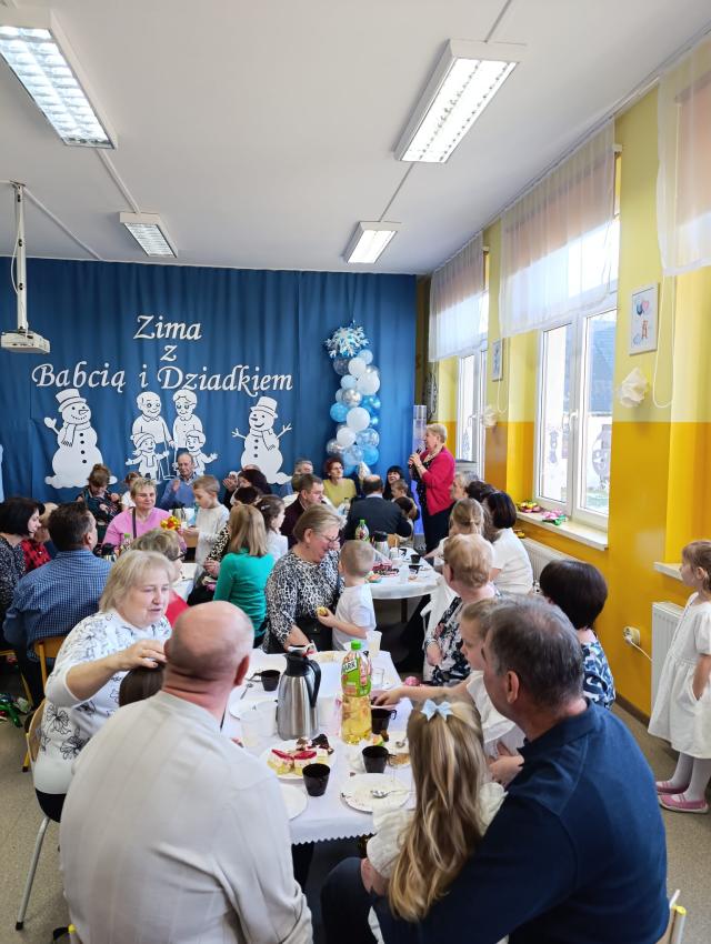 W naszym przedszkolu odbyła się uroczystość z okazji Dnia Babci i Dziadka. Sala została udekorowana w zimowej scenerii, a dzieci wystąpiły przebrane za bałwanki. Przedszkolaki zaprezentowały piosenki i wierszyki o tematyce zimowej oraz wzięły udział w wesołych zabawach zimowych.  Babciom i Dziadkom życzymy zdrowia, radości i wielu pięknych chwil spędzonych razem z wnuczętami.