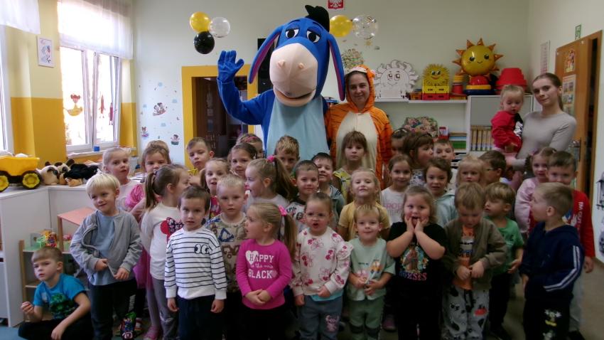 Mama Paulinki przebrana za Tygryska przeczytała dziś Promyczkom bajkę pt."Urodziny Kłapouchego", a jej przyjaciel Kłapouchy potańczył z dziećmi i rozdał im lizaki urodzinowe.
