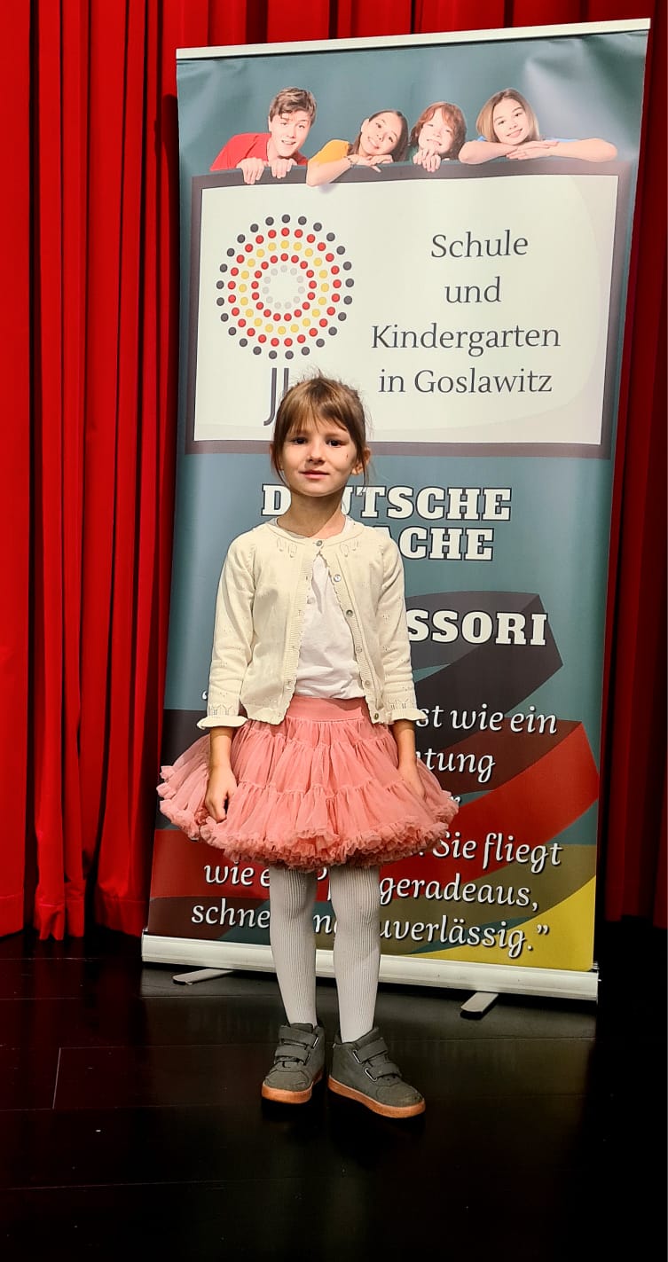 Dnia 30.10.2025 w Domu Kultury w Dobrodzieniu odbył się Niemieckojęzyczny Konkurs Recytatorski "KITA REISE DURCH DIE WELT DER GEDICHTE", gdzie naszą placówkę reprezentowała Ania. Ogromne brawa za występ i odwagę.