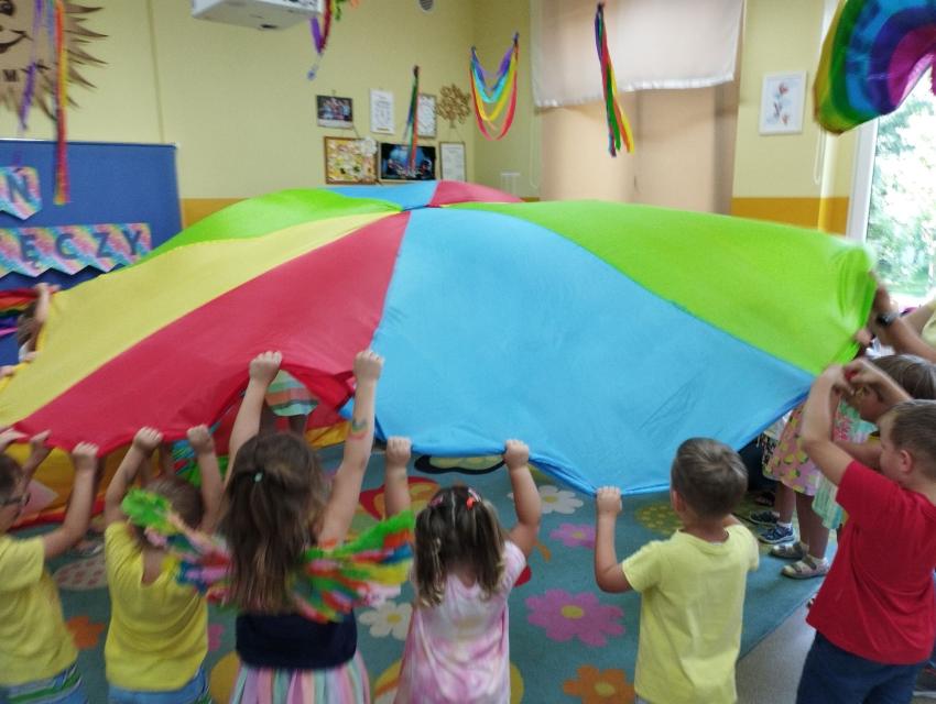 Zabawy z kolorami podczas wakacji podsumowaliśmy dziś Dniem Tęczy, który był wspaniałą okazją do radosnych obchodów, kiedy dzieci poznają zjawisko tęczy, rozwijają kreatywność, uczą się kolorów. Dzień Tęczy był pełen różnorodnych barw i wielu artystycznych oraz ruchowych wrażeń dla dzieci.